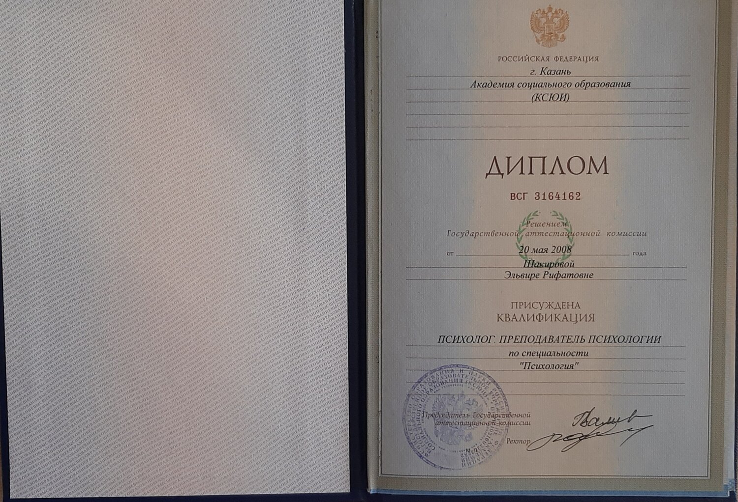 Образование: Академия социального образования (КСЮИ).Педагог-психолог, психолог-консультант.