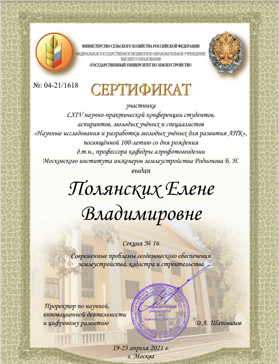 Образование: МИИГАиК, "Геодезия",