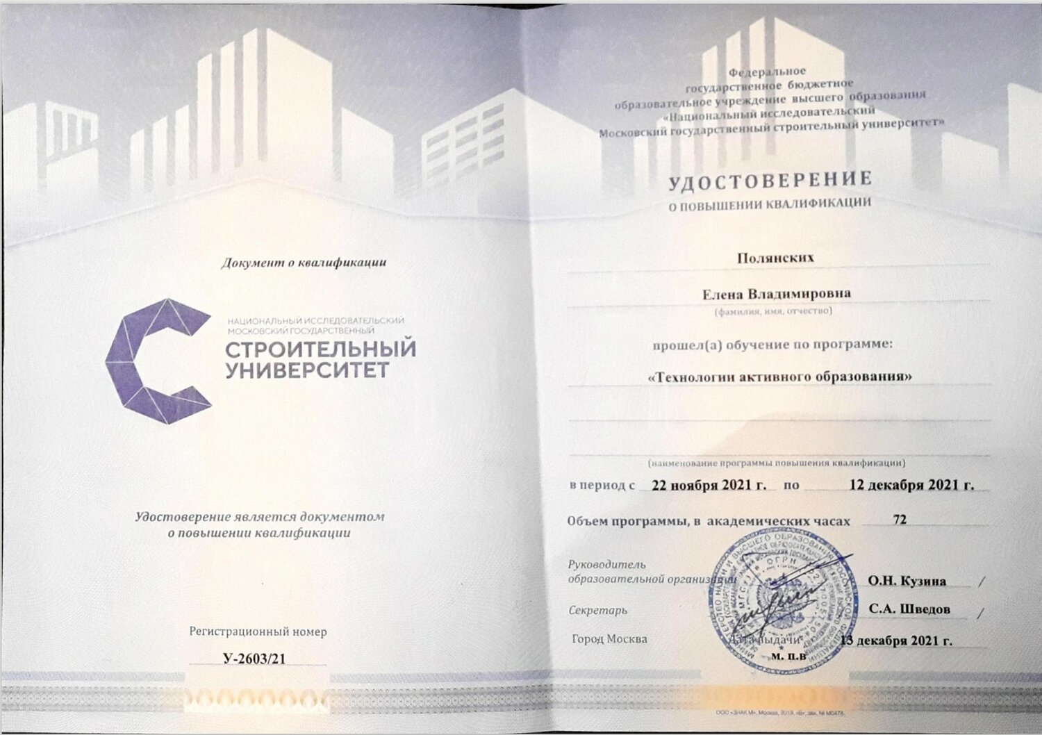 Доп. образование: Курсы повышения квалификации "Технологии активного образования"