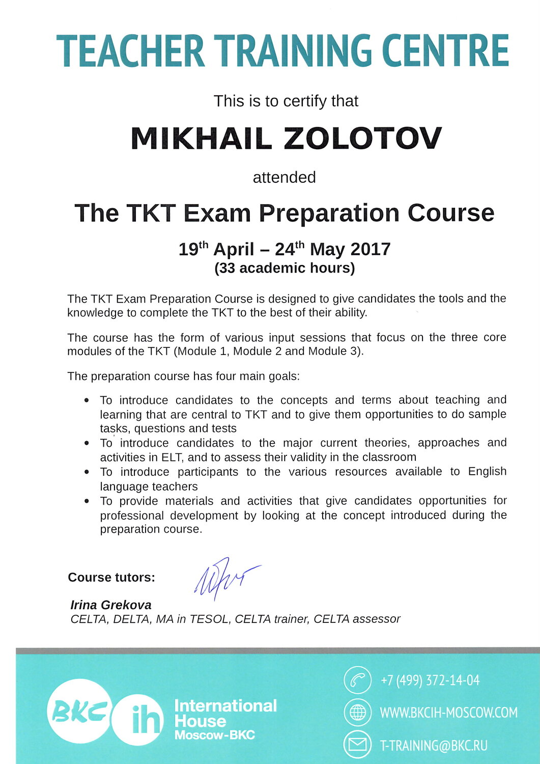 Помогаю студентам с различным опытом и бэкграундом достичь поставленных целей в обучении. Эффективно развиваю разговорные и письменные навыки и навыки восприятия на слух. В работе применяю рекомендованные методики, собственные разработки и игры.