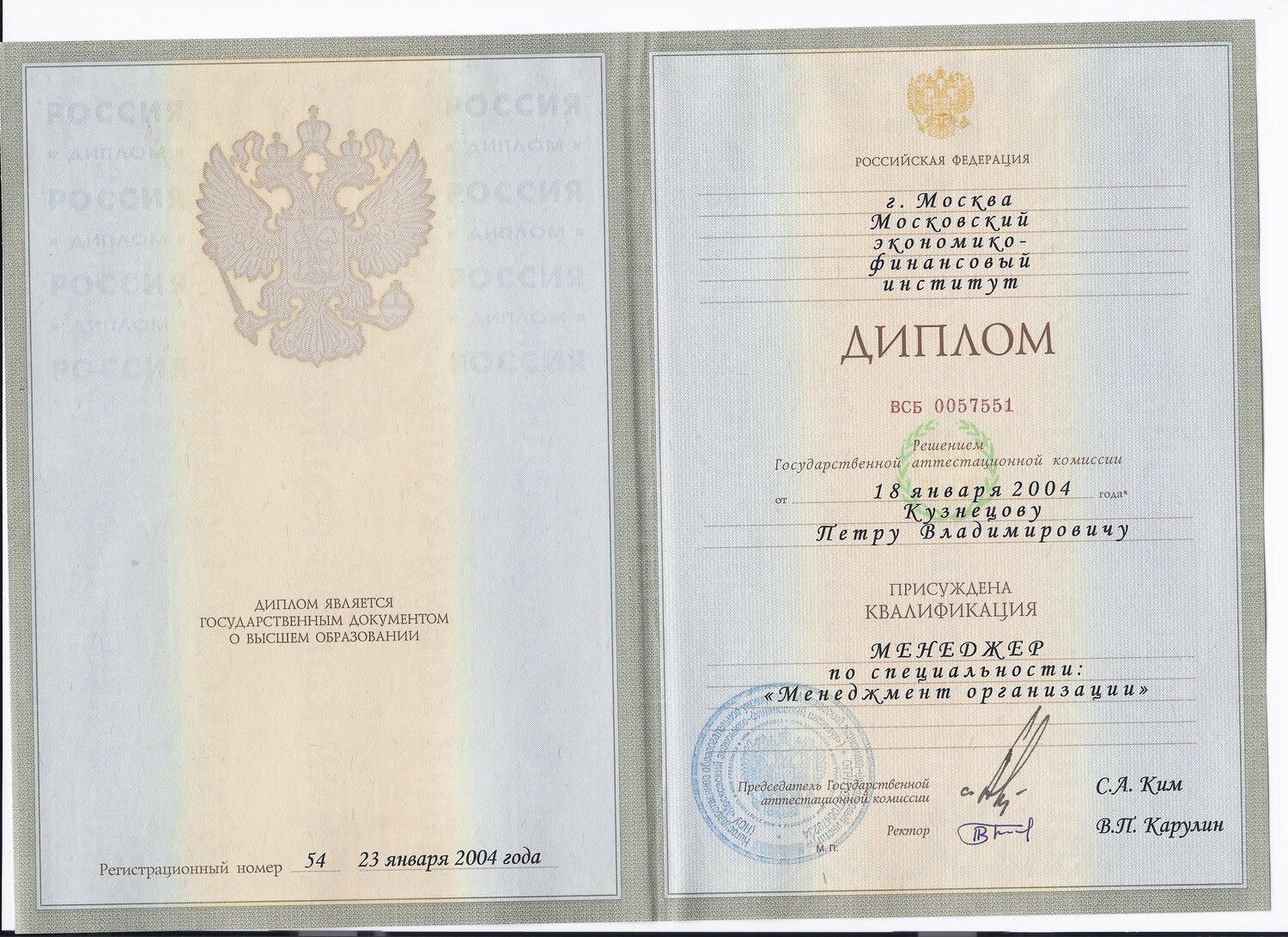 Доп. образование: Московский экономико-финансовый институт