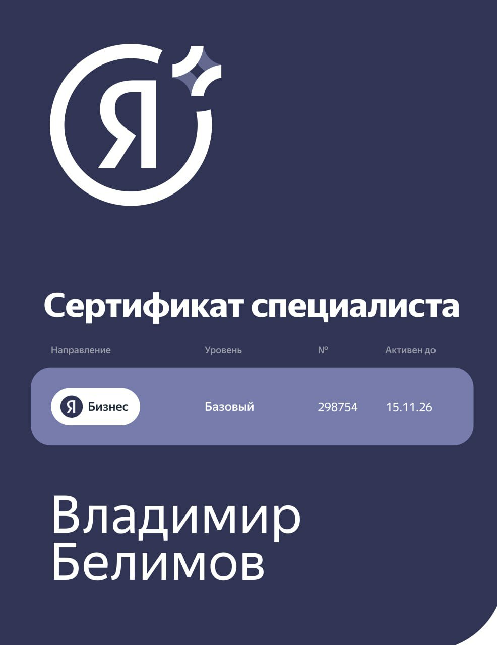 Доп. образование: Специалист по Яндекс Бизнесу