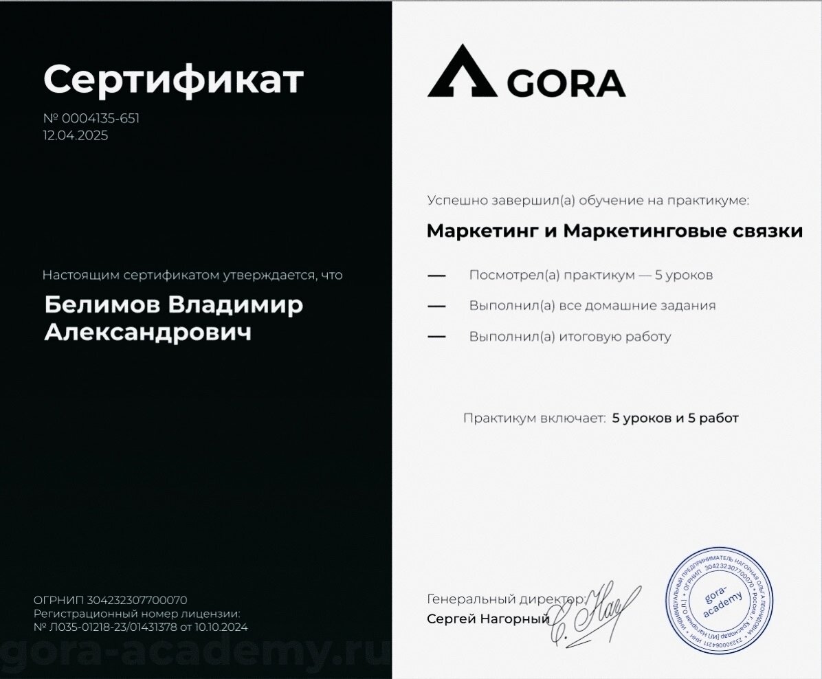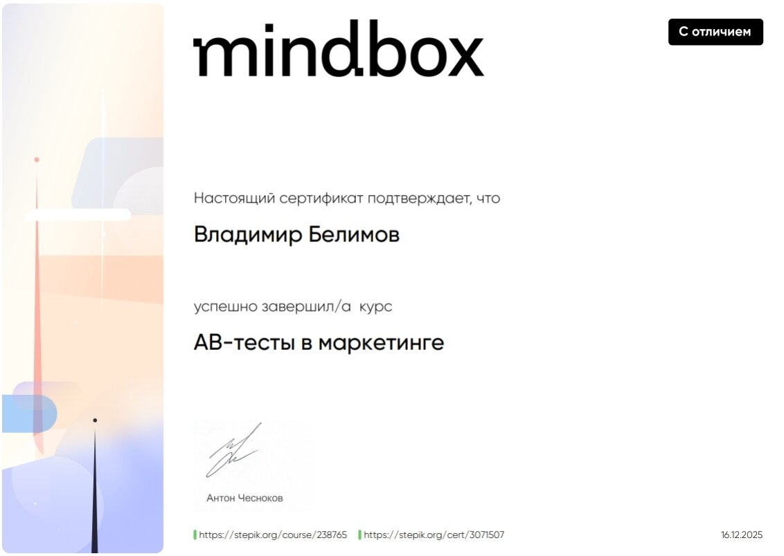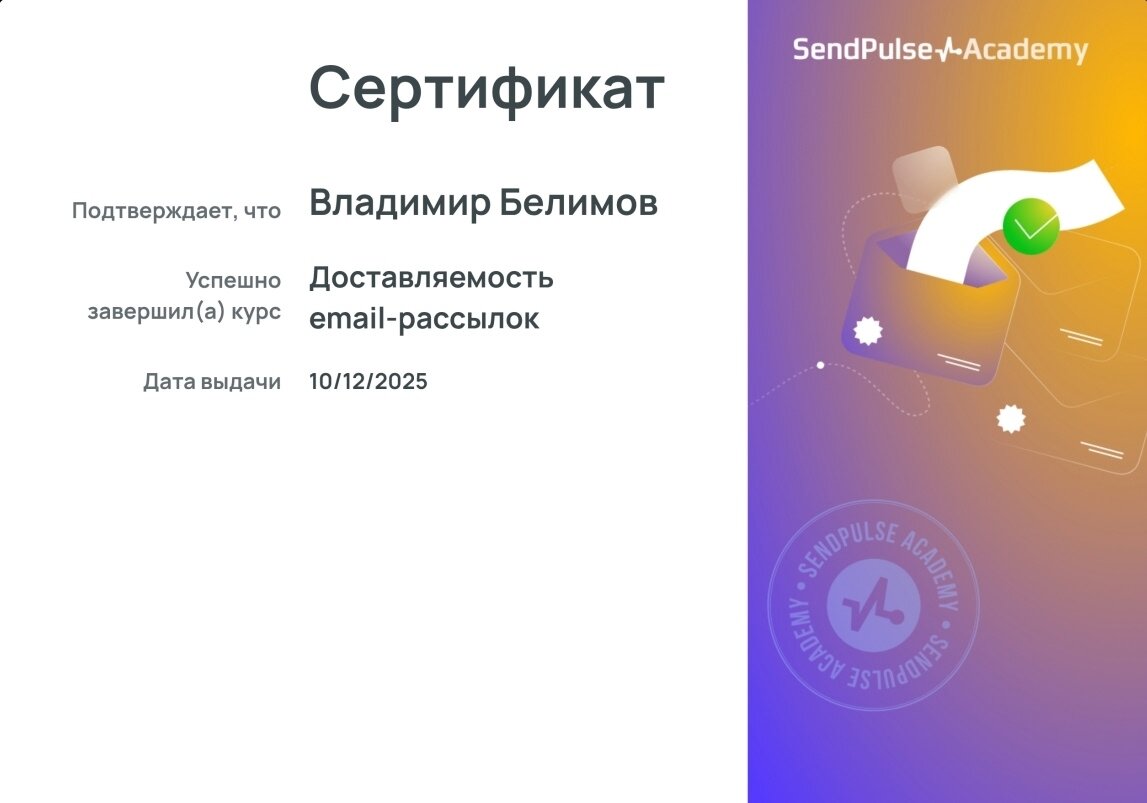 Доп. образование: Специалист по таргетированной рекламы в VK Ads