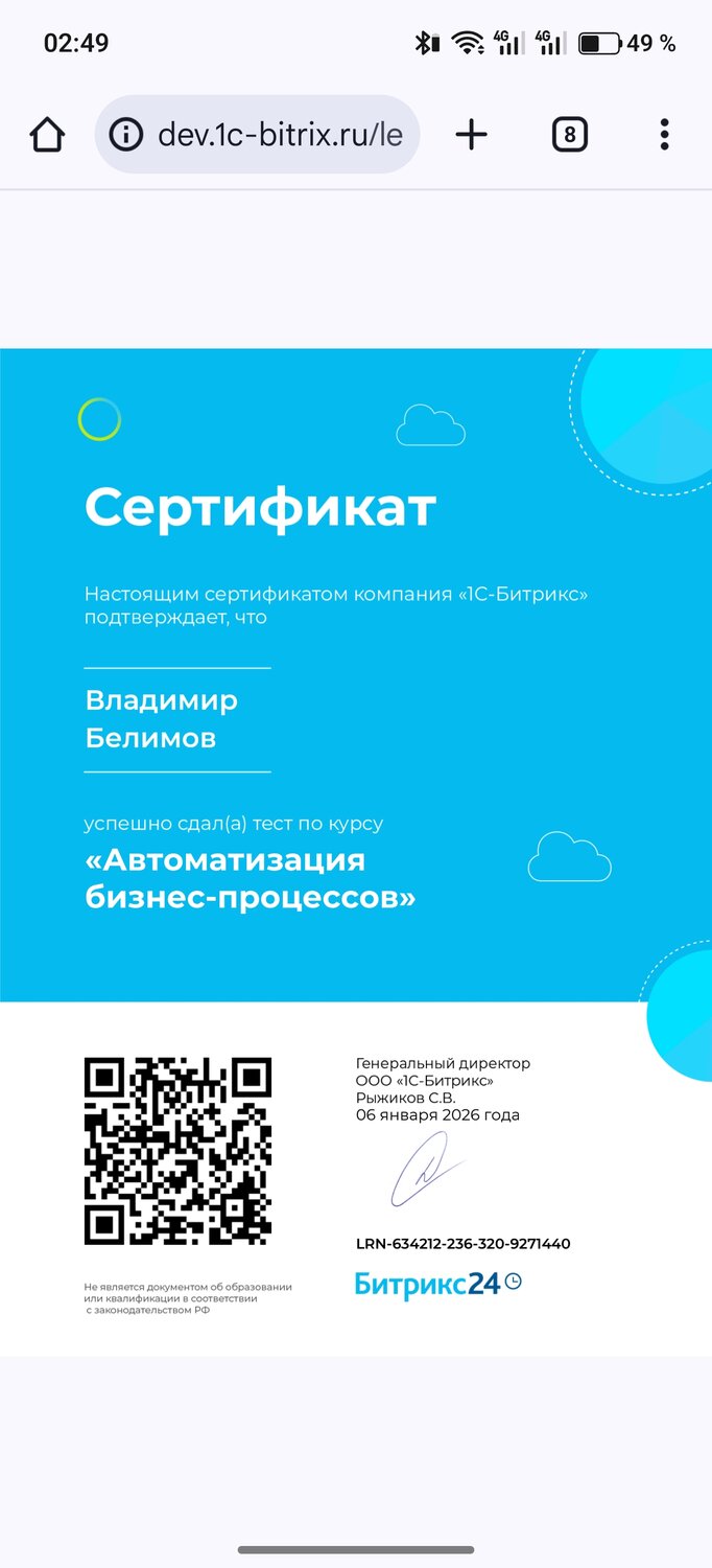 Доп. образование: Специалист по Битрикс24