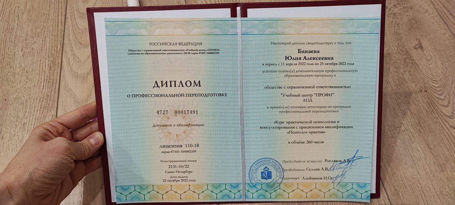 Перед началом работы провожу безоплатную установочную сессию,длительностью до 30 мин,чтобы познакомиться и узнать вашу проблематику. А так же даю специальные диагностики,чтобы понять в каком вы состоянии и знать с чем работать.